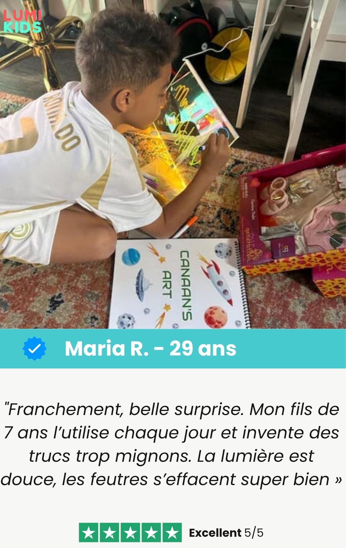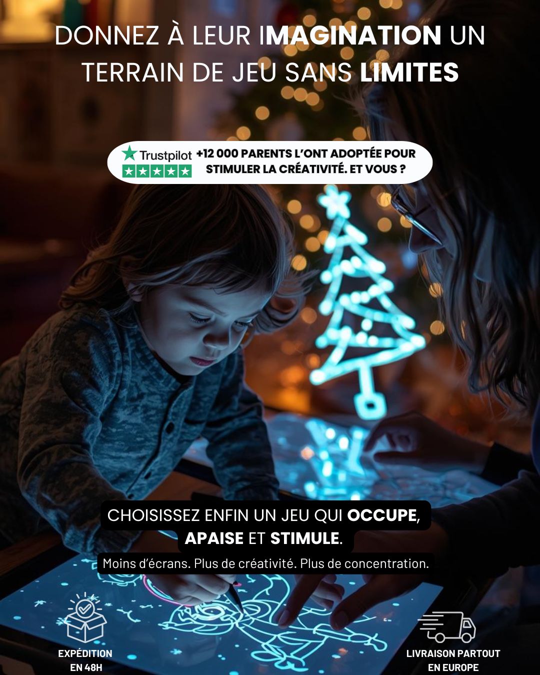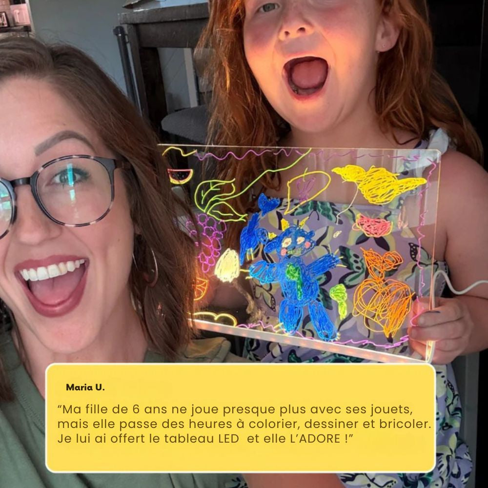 Avec la lumière LED, chaque dessin s’anime et devient une création lumineuse qui émerveille les enfants… et les parents.