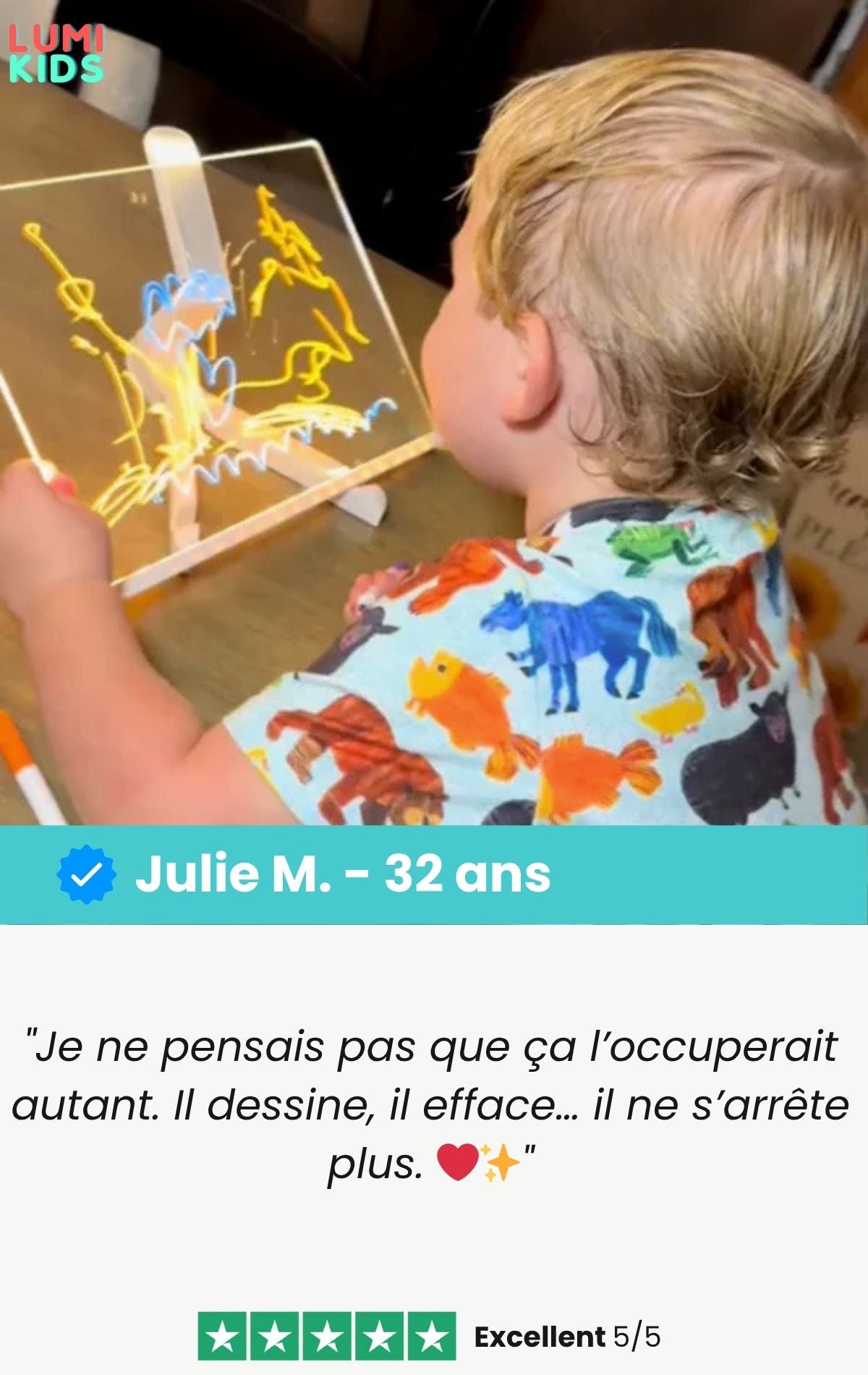 "En tant qu’ergothérapeute pédiatrique, je recommande LumiLite : il détourne les enfants des écrans tout en stimulant motricité fine, coordination œil-main et créativité. Pour les enfants avec TDAH, autisme ou troubles sensoriels, c’est bien plus qu’un simple jeu"