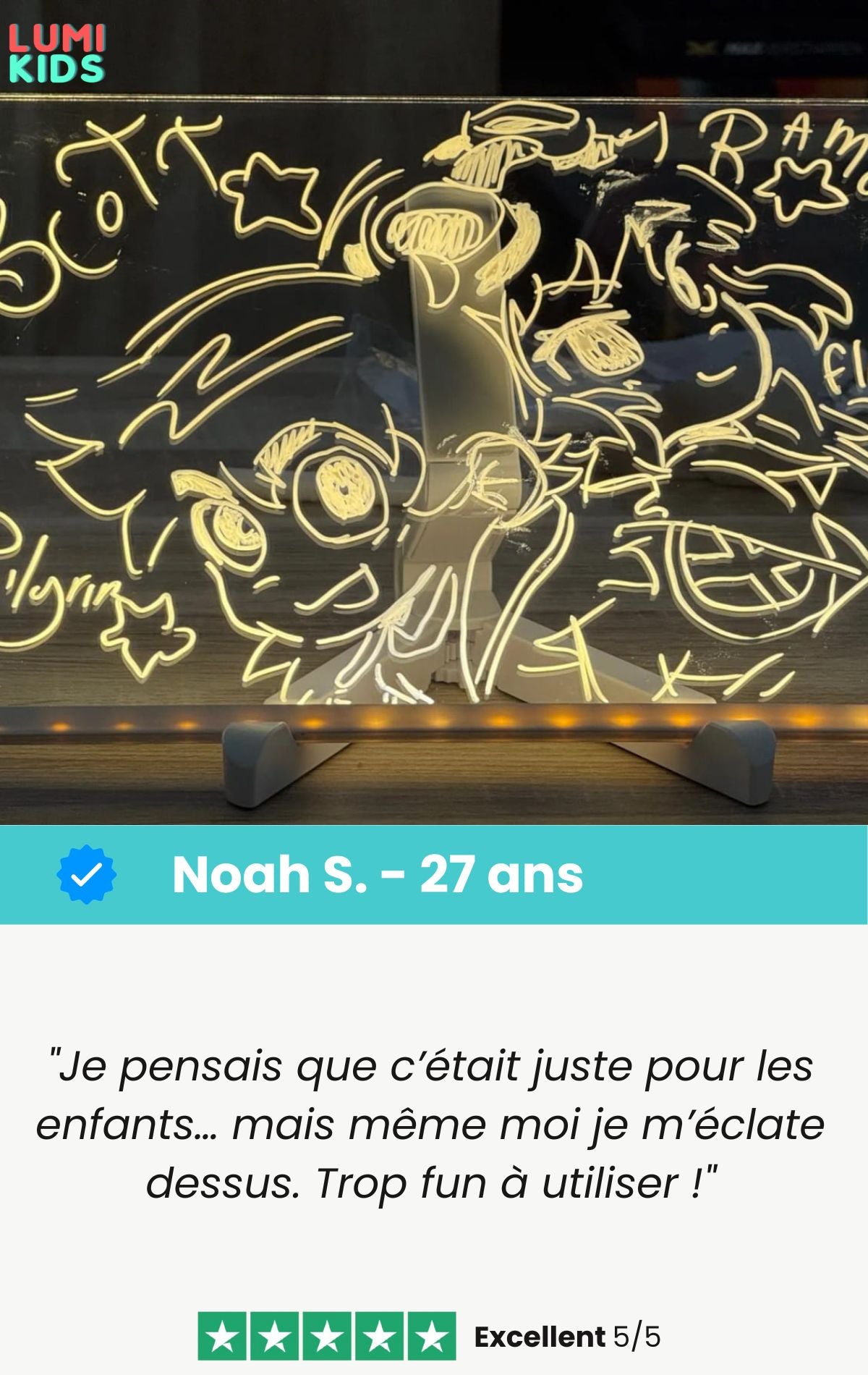 Avec la lumière LED, chaque dessin s’anime et devient une création lumineuse qui émerveille les enfants… et les parents.